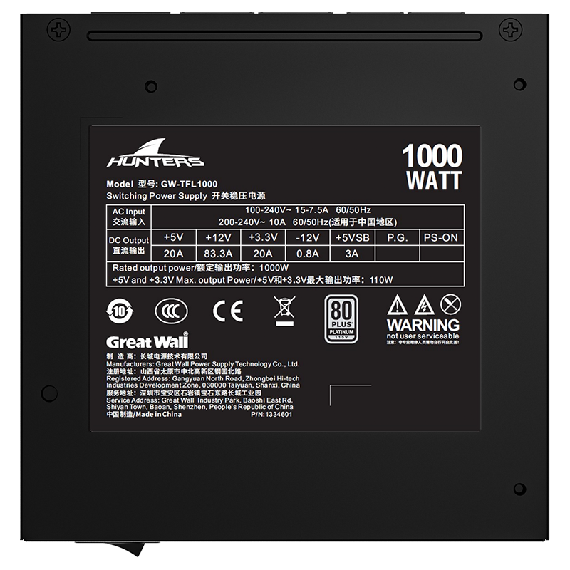 | Efficiency Certification | 80PLUS(PLATINUM) |