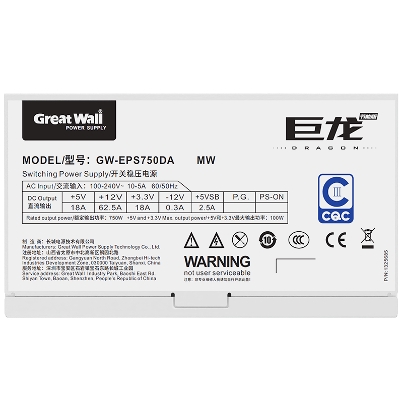 | Description | White casing, PCIe 5.0 interface, Level III energy efficiency certification (CQC III), efficiency up to 92%. |